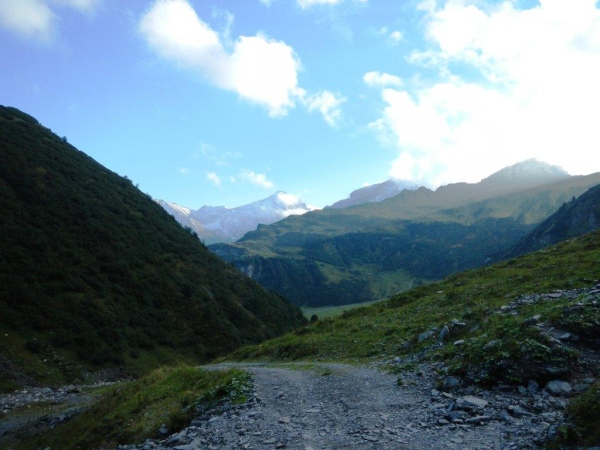 Maria-Christina hält am Brunnen immer noch die Stellung mit ihrem Gel- und Riegelvorrat, muss sich aber mit Wolldecken gegen die sich langsam einschleichende feuchte Abendkühle schützen. Otto und ich laufen quietschfidel weiter ins Weisstannental hinunter und werden dabei von Verena eingeholt. Wir bleiben zusammen und laufen gemeinsam zur großen Stärkung vor der noch größeren Steigung hoch zum Gamidaurkamm.