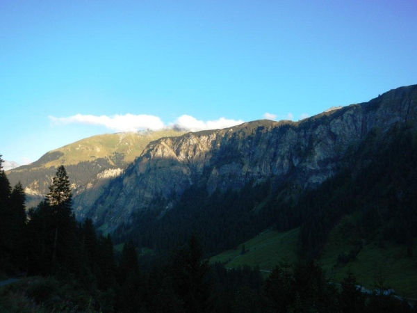 Vor 101 Jahren wurden in dieser Gegend wieder Steinböcke ausgesetzt. Dies, nachdem es die Schweizer geschafft hatten, dieses Wild im Land gänzlich auszurotten. Aufgrund dieser Tatsache ist es also Fakt, dass auch die Vorzeige-Schweizer aus Graubünden, die Steinböcke Gian und Giachen einen Migrationshintergrund haben. Ihre hier angesiedelten Vorfahren stammten aus königlichem italienischem Bestand und um die Legalität ihrer Akquisition und ihres Exports war es auch nicht gerade bestens bestellt. Die Steinböcke machen sich rar, dafür äsen am Waldrand sechs Hirsche, auf welche uns die Mannschaft des Verpflegungspostens aufmerksam macht. In einem anderen Tal in dieser Gegend hat kürzlich ein Wolfspaar eine kleine Familie gegründet. Diese Gegend gefällt mir immer besser.