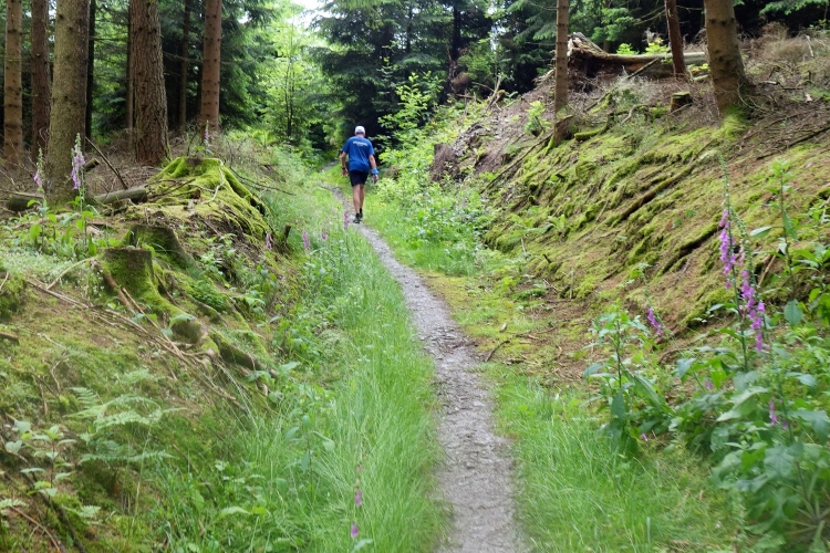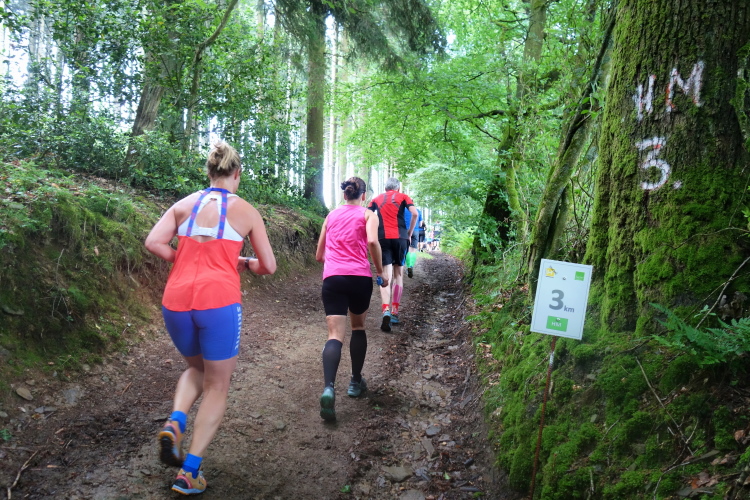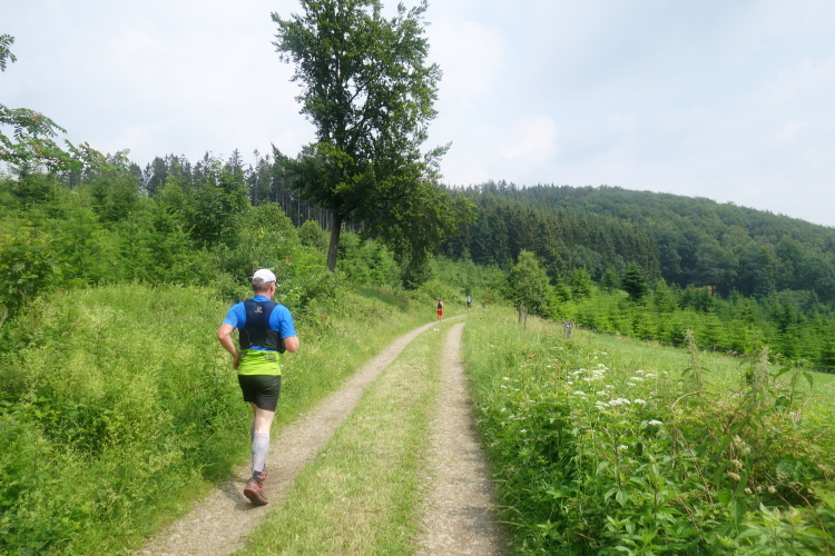Es geht ständig auf und ab. Die Strecke ist sehr abwechslungsreich. Breite Waldautobahnen, einfache Forstwege, schöne Singletrails, die im Wald besonders schön zu laufen sind. Der Boden federt und die Achillessehnen freuen sich.