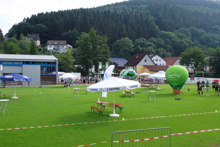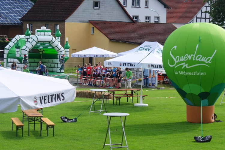 Beim Zelt der Sauerland Werbung hole ich mir noch einiges an Infomaterial für Ausflüge ins schöne Sauerland. Wir sind hier in Sundern-Hagen schon mitten drin. Um 9.40 Uhr startet der erste Schüler-Trailrun über 1,7 Km. Zwei Runden haben die U 14 + U 16 zu absolvieren. Im Stadion sind Schleifen zu drehen, da hat man mehr vom Applaus.