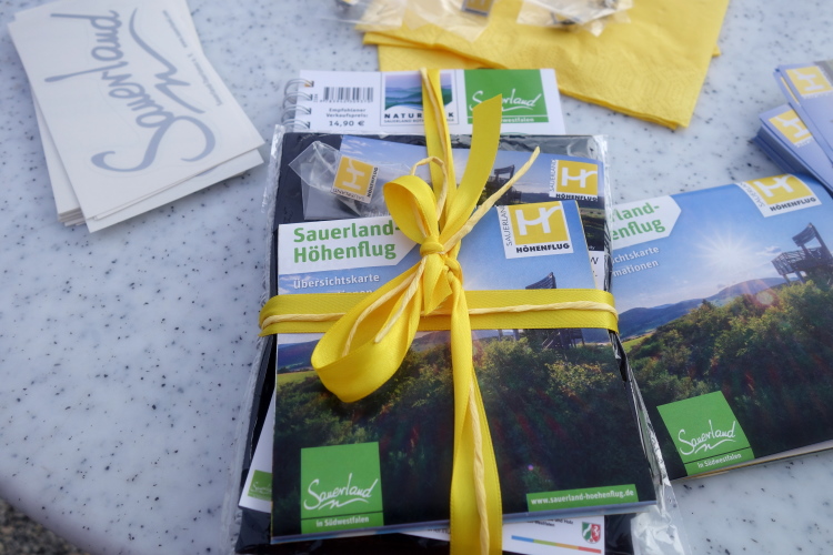 Rasch habe ich die Startunterlagen. Im grünen Sauerland Täschken gibt es ein Sauerland-Höhenflug-Trailrun Shower Gel. Eine schöne Idee. Ich hole mir am Buffet noch leckeren Kuchen. Noch ist die Auswahl groß und bei einem Euro pro Stück Kuchen muss man zugreifen. So, die Verpflegung für nach dem Lauf ist gesichert und ich habe noch Zeit zum Entspannen.