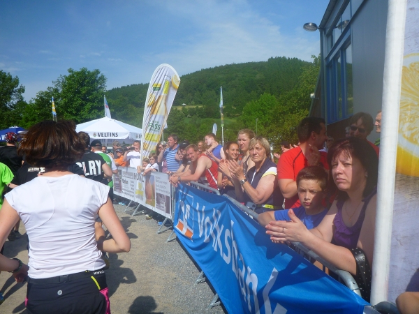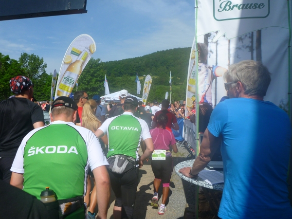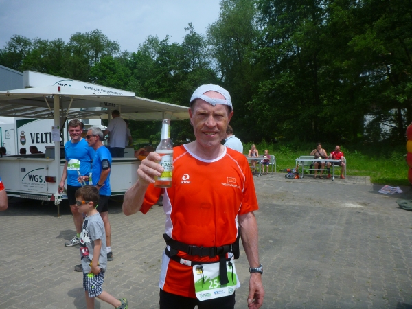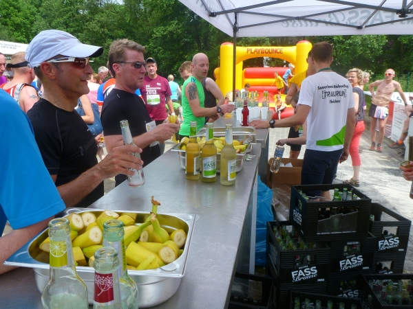 Vorbei am Sorpetaler Fensterbau hin zum Mega-Sports-Center. Nach 2.11 Stunden habe ich fertig und darf zum Erfrischungsstand und mir eine kühle Fassbrause holen.