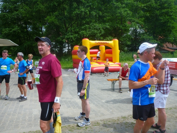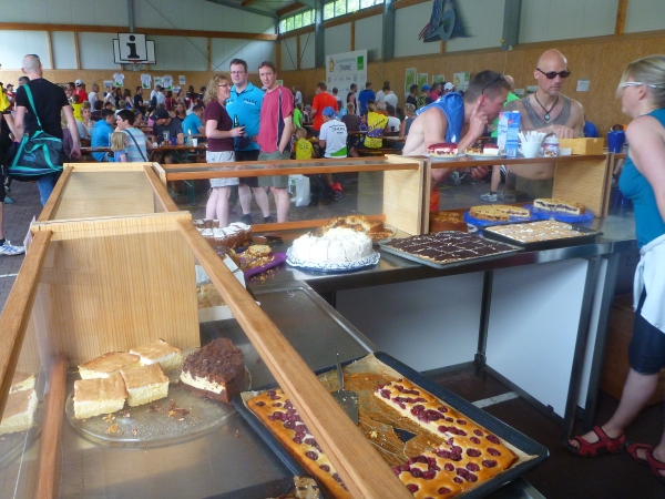 Karl-Heinz ist auch bald da und wir sind uns einig: Das war richtig schön heute. Rasch die Wechselkleidung aus den Autos holen und ab ins Dorf, wo nach wenigen hundert Metern an der Schützenhalle Container zum Duschen stehen. Bei "angenehm kühler" Wassertemperatur werden Dreck und Schweiß abgeduscht und hinein geht es zur Getränke- und Verpflegungsaufnahme im Mega-Sports-Center.