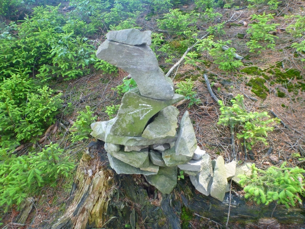 Auf den ersten Km weisen uns unzählige Steinmännchen den Weg. Zur Sicherheit sind einige noch mit Kreidepfeilen in Laufrichtung versehen. Dank des zuletzt trockenen Wetters haben wir nur wenige Matschstellen zu passieren.