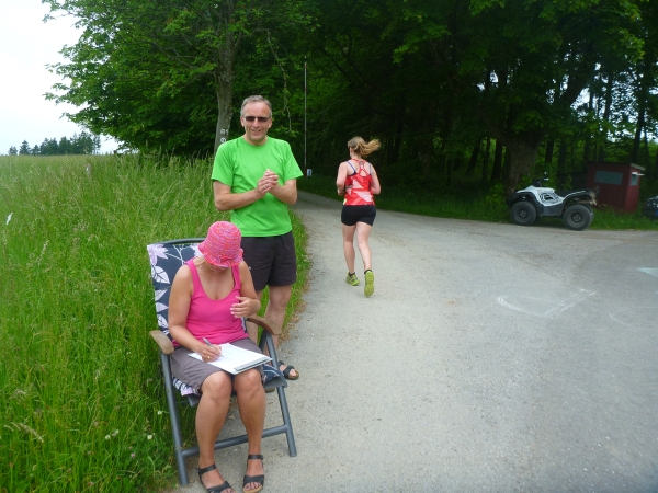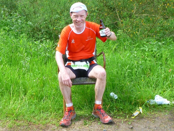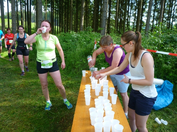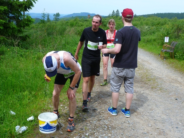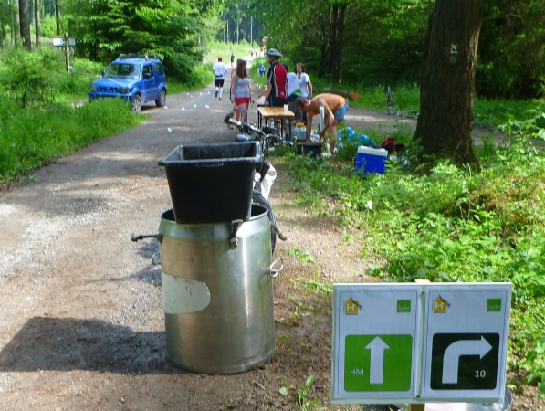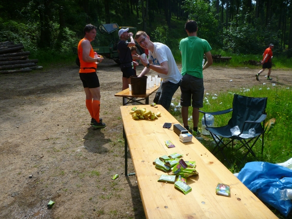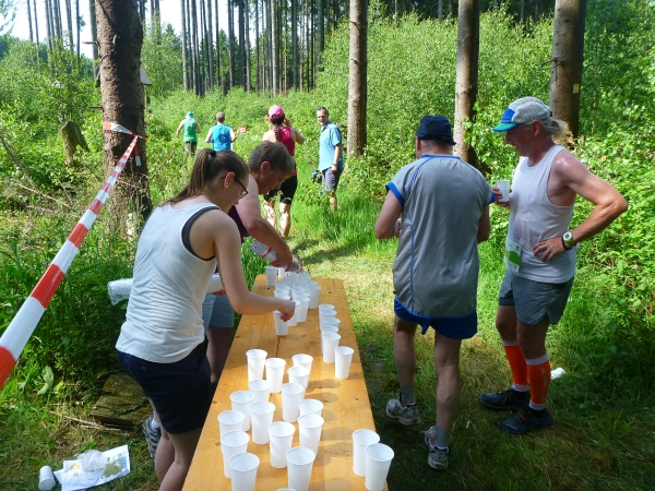 Es geht im ständigen Wechsel von aufwärts, abwärts, im Wald, außerhalb des Waldes, breiter Forstweg, schmaler Single-Trail immer weiter. Lange schon sind wir auf der zweiten Hälfte. Da taucht die nächste VS auf und ich sitze auf einem Stuhl. Sofort wird mir ein leckeres Bier angeboten. Ob die mich hier mit einem bekannten anderen M4Y-Reporter verwechseln?