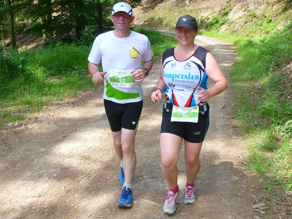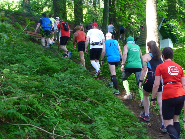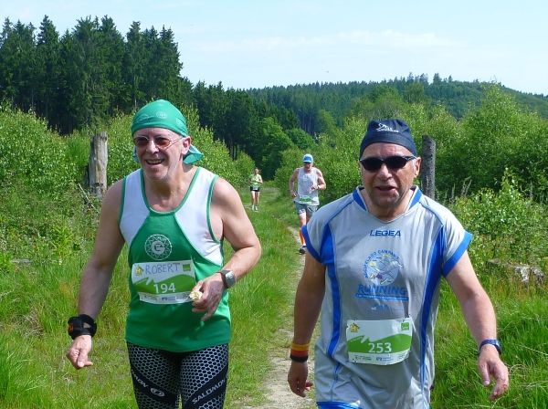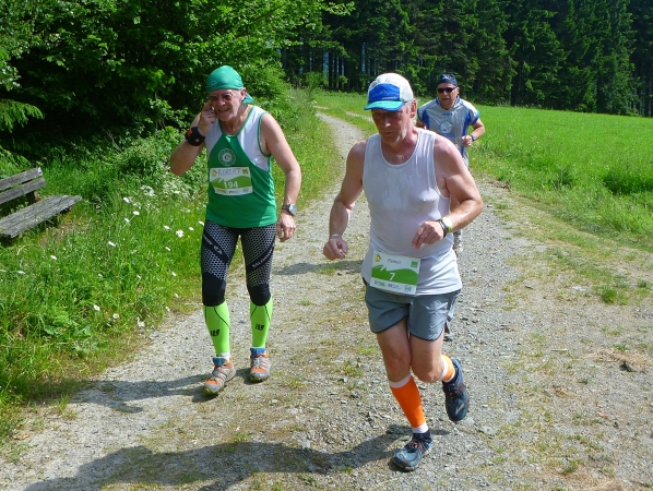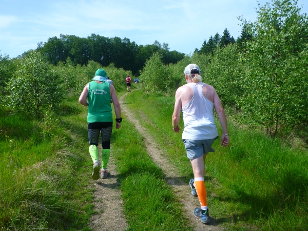 Karl-Heinz gesellt sich zu mir. Wir werden den Lauf gemeinsam angehen. Angesichts der hohen Temperaturen steht uns nicht der Sinn nach schneller Rennerei. Wir wollen den Trail genießen.