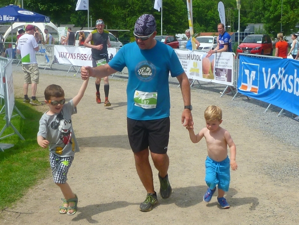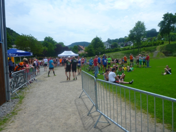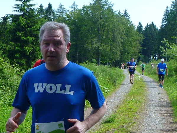 Im Läuferfeld sind wir uns einig: Das ist Klasselauf in schöner Landschaft, mit abwechslungsreicher Strecke und guter Organisation. Ich sehe nur zufriedene Gesichter. Woll! So sagt der Sauerländer und für alle, die es noch nicht wissen, hat es ein Läufer auf dem Shirt stehen.