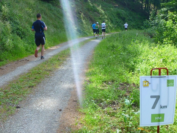 Mit Höhenflug ist nicht ein Rundflug übers schöne Sauerland gemeint. Es ist die Bezeichnung für einen der schönsten Wanderwege Deutschlands mit einer Länge von 250 Km. Diese 250 Km stehen gottlob heute nicht auf dem Programm. Angeboten werden drei Strecken: HM, 10Km und 5Km. Ich laufe den Halben.