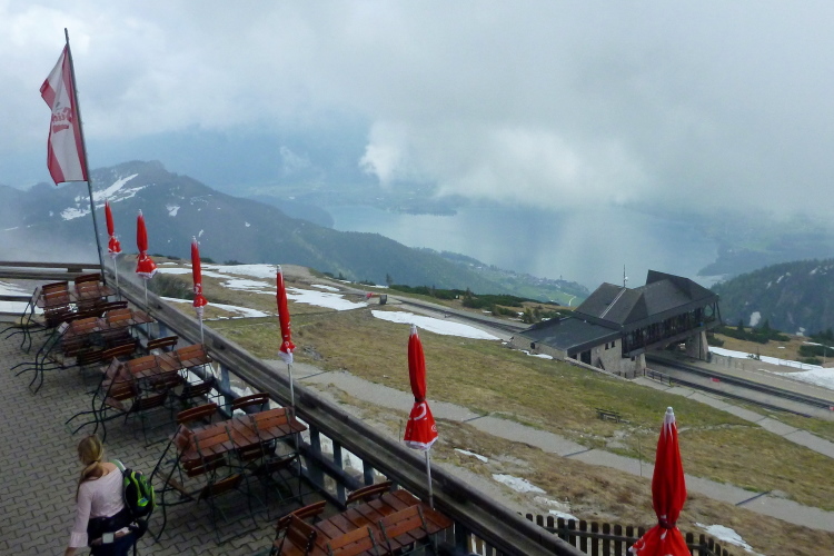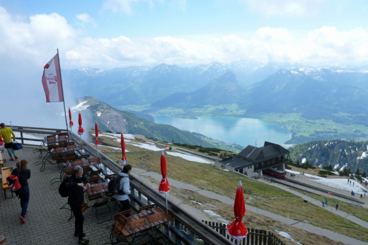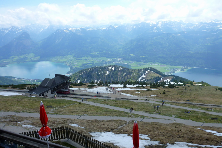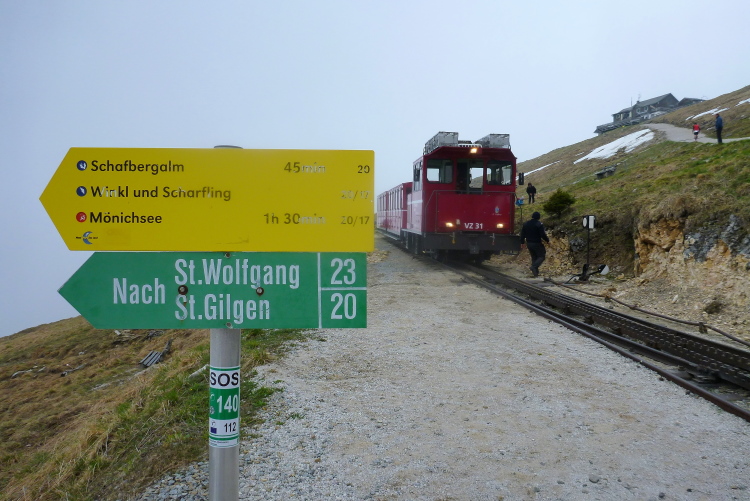 Als Verehrer Peter Alexanders - die deutlich Jüngeren unter Euch mögen jetzt vielleicht ein Fragezeichen im Gesicht haben - zieht es uns wieder ins „Weisse Rössl“. Dieses war vor rund 60 Jahren der Mittelpunkt der erneuten Verfilmung des Lustspiels von Oskar Blumenthal und Gustav Kadelburg, mehr darüber im damaligen Laufbericht. Der St. Wolfganger Hausberg besticht bei gutem Wetter nicht nur durch eine unvergleichliche 360°-Panoramaaussicht, sondern auch durch eine Zahnradbahn. Und die ist der Mittelpunkt des Geschehens.