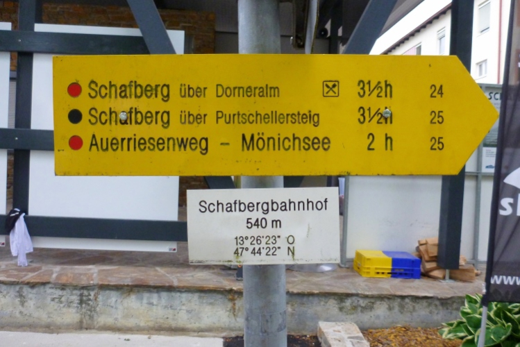 5,83 km mit 1.182 Höhenmetern überwiegend auf dem Gleiskörper der Schafbergbahn.