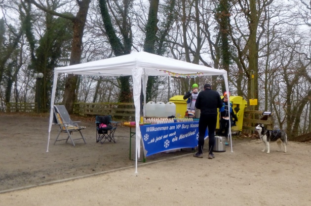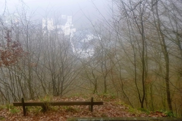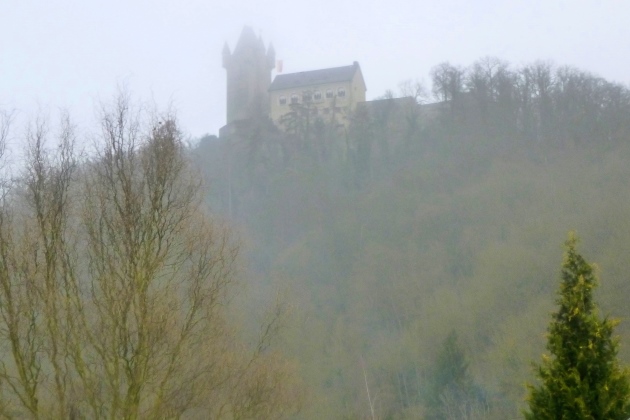 Qualvoll laufen wir hoch zur Burg Nassau. Endlich oben, gibt’s Schinders Gebäck. Lecker. Dazu was Heißes, was Kaltes und was Blondes (in der Flasche, aber die Edelhelferin ist es auch). Kraft ist nötig, um an Nassau vorbei hoch zum Fernsehturm zu kommen. Der Blick in die Weite ist da oben umwerfend - im Sommer, heute wegen Nebel nur eingeschränkt. Aber den Briefkasten finden wir. Offline- der Titel. So ähnlich fühle ich mich auch gerade.
