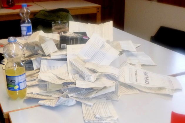 Und dann, oben an den 12 Kehren: Der Idiot. Von Dostojewski. Nicht zum drin lesen (könnte man aber natürlich), sondern um eine Leseprobe am nächsten VP vorzulegen. Diesen fiesen Hügel könnte man ja auch umgehen… Große Gaudi am toten Briefkasten – der Titel macht neugierig. Was hat der Schinder wohl beim kommenden Posten ausgesucht?