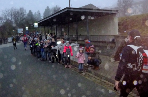 Die 5 km nach Miehlen geht es bergab im Wald, gut zum Anwärmen oder Tempo vorlegen. Ein ruhiges Einlaufen ist das, bis im Ort die Grundschulkinder jubeln – es ist einfach super, wie sie uns anfeuern! Vielleicht legen wir hier den ein oder anderen Grundstein für künftige Renner! Jeder von uns hat mit seiner Startnummer ein Gedicht bekommen, von den Kindern handgeschrieben und koloriert. Das sind die schönen Erinnerungen, die bleiben!