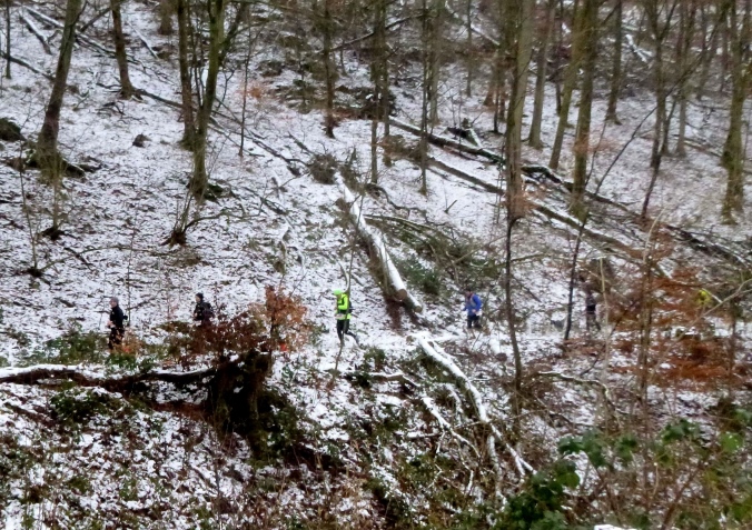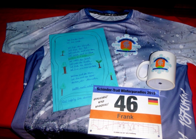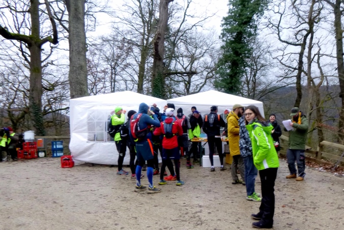 Endlich angekommen, geht es auch schon los. Startnummern, lecker Abendessen, Schwatz & Klön. Im Winter könnte ja auch mal das Wetter zum Thema werden: wir haben aber Glück- sanfte Wärmewellen tauen das Eis ab und der Regen bleibt weg. Aber Schnee bleibt noch genug übrig…