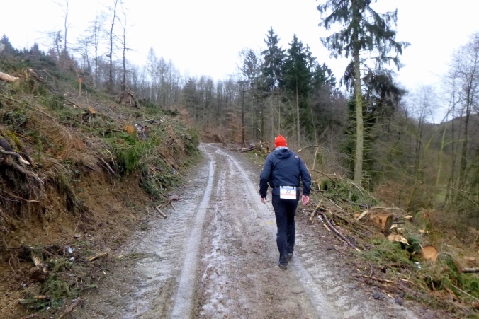 Ja, auch Straßen müssen gequert werden – bei Willi Arzt seiner Mühle, in Niedertiefenbach und am Freibad, da kommt Asphalt unter die Treter. Sonst sind es wieder allmählich breitere Forstwege. Alles ist gut. Noch viel besser ist der VP bei ca.52km. Wieder sämtliche Köstlichkeiten, Warmes und Kaltes (ja wirklich - Eis am Stiel!), Süßes und Salziges. Warum sollte ich hier nochmal weg? Ach ja, der Schmerzmacher! Da war ja noch was.