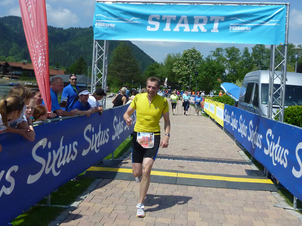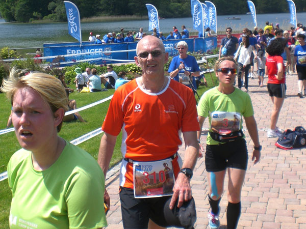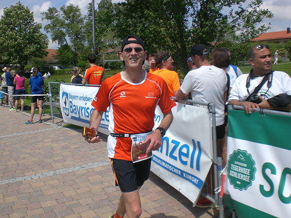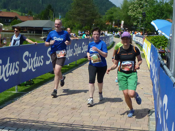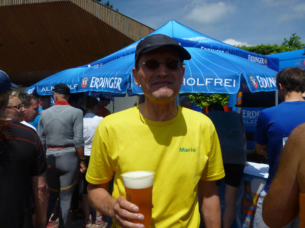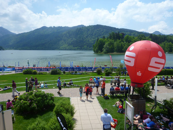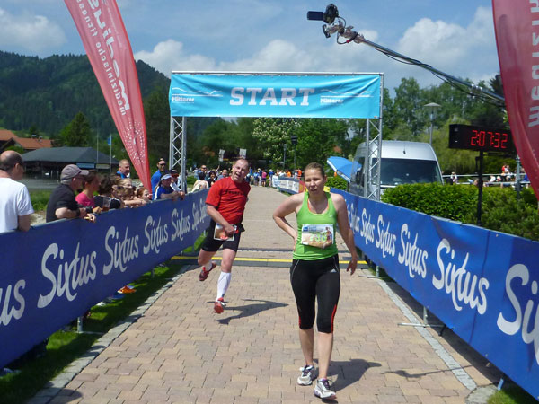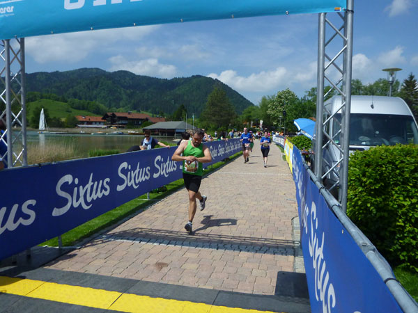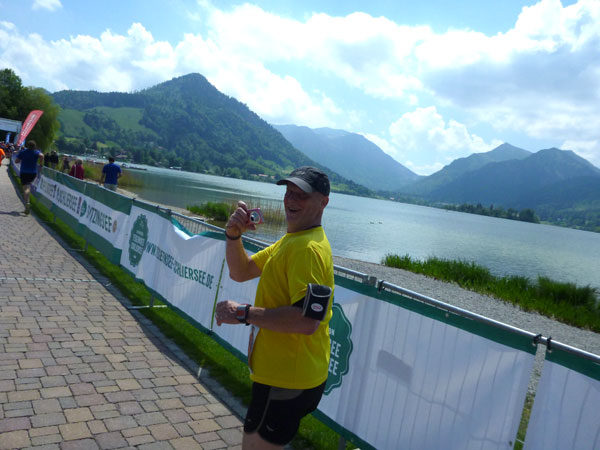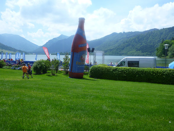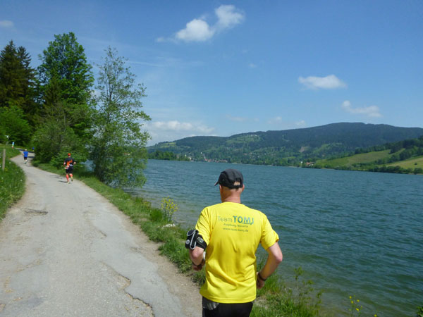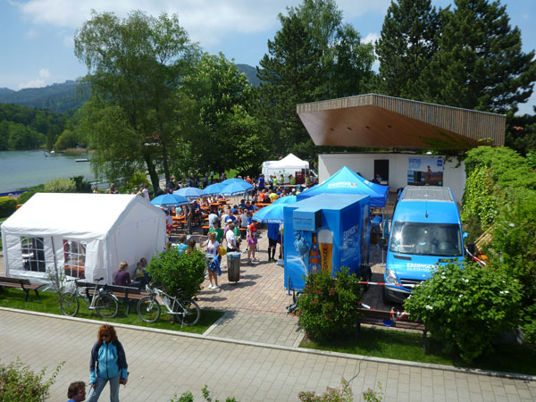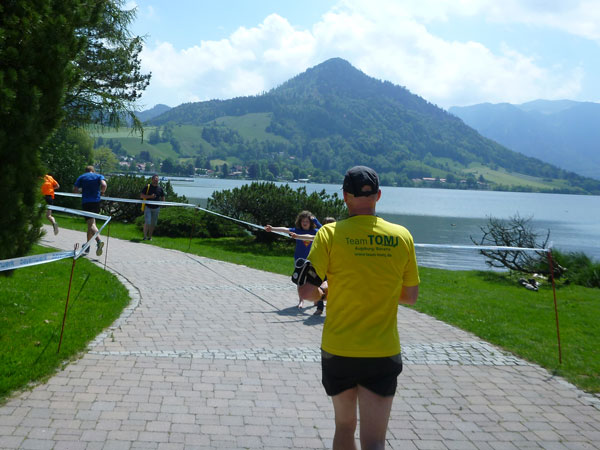 Oftmals direkt auf Uferhöhe geht es jetzt gemeinsam mit den Sportlern auf den kürzeren Strecken an der Westseite des Schliersees bis ins Ziel. Ein paar kleine Steigungen sind zwischendrin noch zu bewältigen, dann haben Charly und ich es geschafft. Im Ziel wartet ein kühles Erdinger Alkohlfrei, Blechkuchen, Butterbrezen, Heumilch-Joghurt und vieles mehr auf uns. Auch Massagen werden angeboten und duschen kann man in der vitalwelt schliersee. Autogrammsammler können sich von unserer Gold-Rodlerin Natalie Geisenberger ein Autogramm holen.