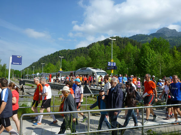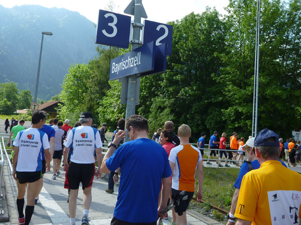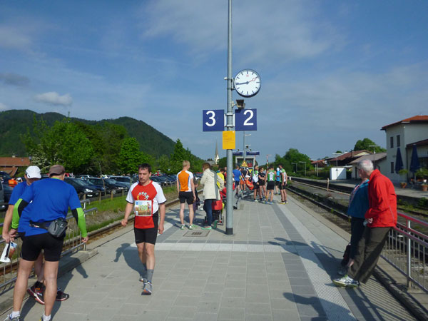 Das ganze Reiseprocedere ist für uns einfach abzuwickeln. Um 8 Uhr ist unsere Ankunft in Schliersee, um 9 Uhr müssen wir wieder am Bahnsteig stehen, um rechtzeitig zum Start um 10 Uhr in Bayrischzell zu sein. Somit bleibt eine Stunde zur Abholung der Startunterlagen, zum Umziehen und für sonstige Geschäfte. Alles klappt reibungslos, die fast 1.000 angemeldeten Teilnehmer bereiten keine allzu großen Schwierigkeiten bei der Abwicklung.