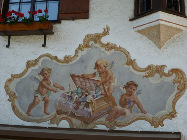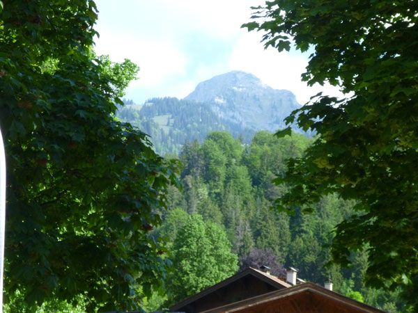 Eine halbe Stunde Zeit bleibt uns, um die schön bemalten Häuser in Bayrischzell oder den Gipfelblick auf den Wendelstein zu bewundern. Allzu hoch sind die umliegenden Berge hier nicht, der Wendelstein kann 1838 m aufweisen und ist damit höchster Gipfel des Wendelsteinmassivs. Wegen seiner exponierten Lage bietet er eine sehr gute Aussicht ins Bayerische Alpenvorland und ist umgekehrt im weiten Umkreis zu erkennen. Auch von unten gut sichtbar ist die Sendeanlage des Bayerischen Rundfunks auf seinem Gipfel.