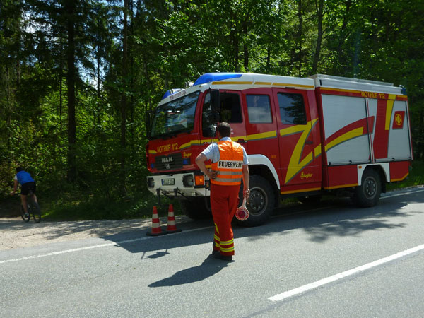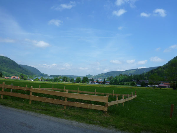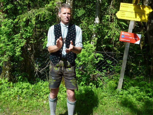 Nach einem Aufstieg folgt auch hier, wie so oft, der direkt Abstieg und der ist sogar noch länger als die Steigung. Die nächsten drei Kilometer geht es nur bergab und man kann schön Fahrt aufnehmen. Freunde der bayrischen Tracht, die in diesem Landesteil noch sehr gepflegt wird, kommen auf ihre Kosten, als wir ein Trachtenfest passieren. Mannsbilder in Krachledernen und teils prächtigen Gamsbärten auf ihre Hüad und Weiberleut in hübschen Dirndln können bewundert werden.