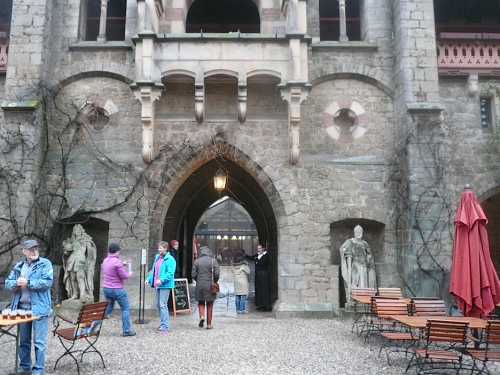 Das Schloss Marienburg ist natürlich das High-Light der Laufstrecke. Über die hölzerne Zugbrücke und durch das große Eingangsportal gelangen wir in den Schlossinnenhof, wo wir mit Dudelsackklängen empfangen werden. Eine gute Idee, das hat was.