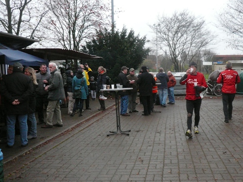 Am Ende von Hallerburg beginnt Adensen und schon ist die erste Runde rum und 21,1km gelaufen. Die Staffeln wechseln, die Halbmarathonis sind im Ziel und die Marathonis begeben auf die 2. Runde.