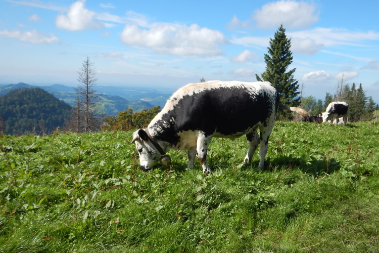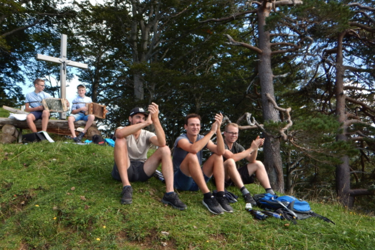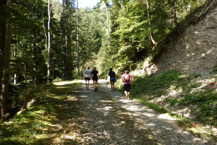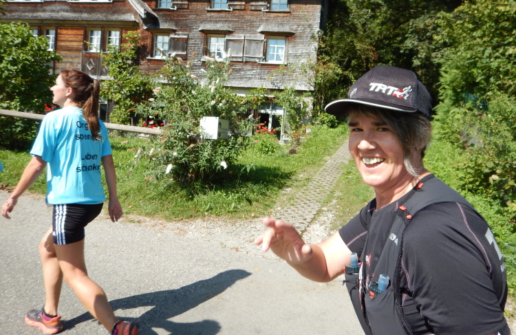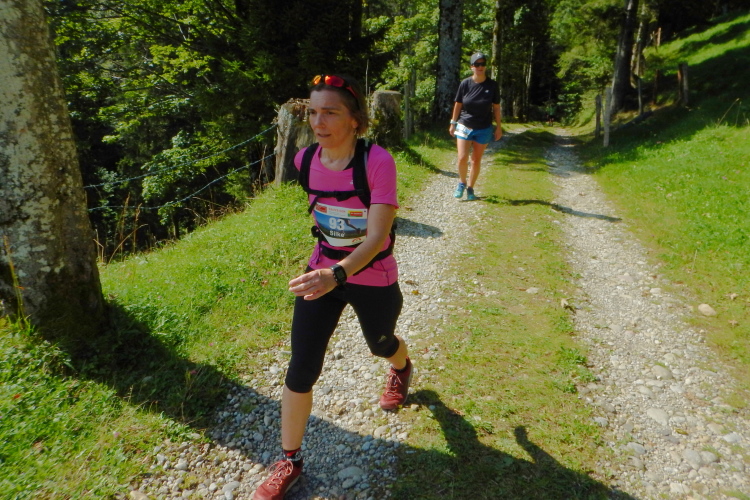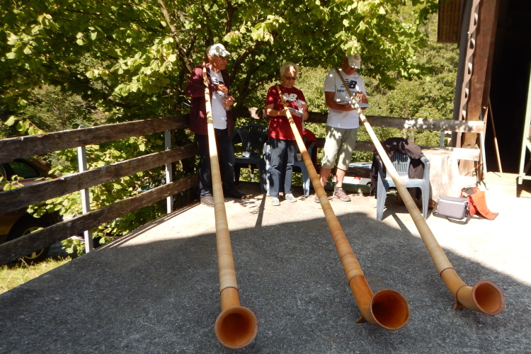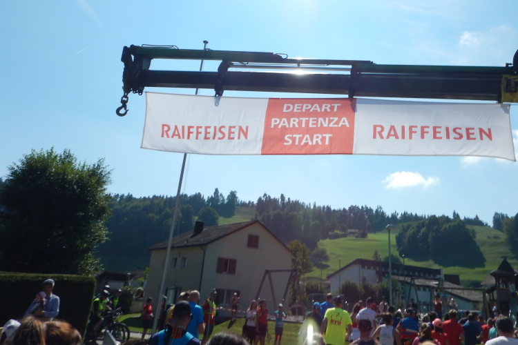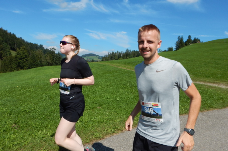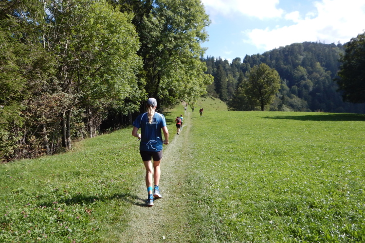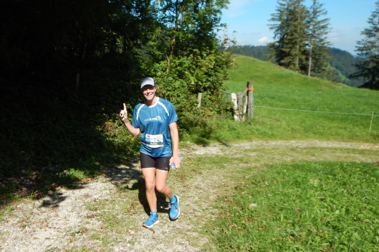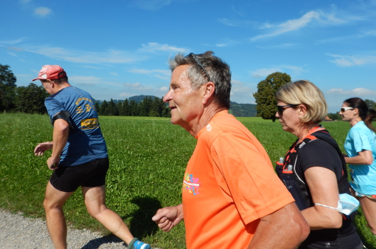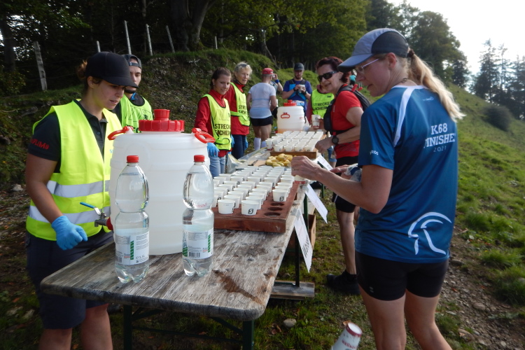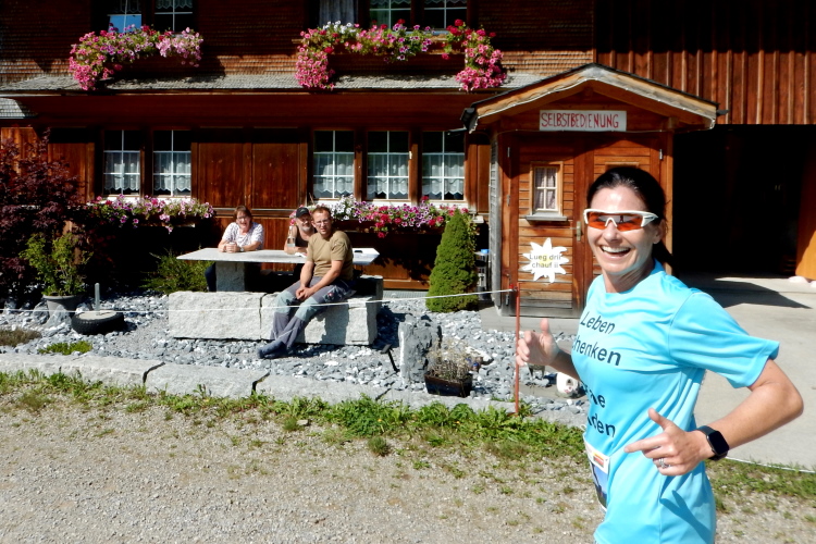 Bei den angenehmen spätsommerlichen Verhältnissen schlägt sich das in Form zahlreicher Schweißtropfen nieder, doch was den Flüssigkeitsnachschub betrifft, kümmert man sich kurz nach dem fünften Kilometer darum. Iso und Wasser werden mit musikalischer Unterstützung von drei Alphörnern gereicht.