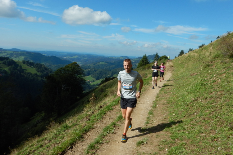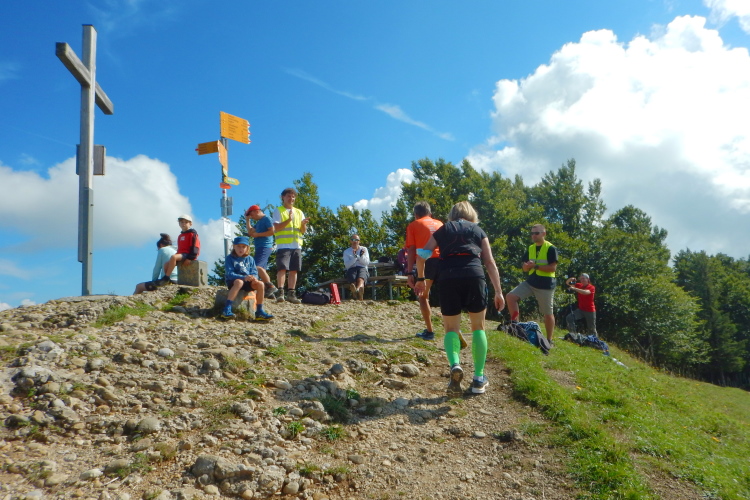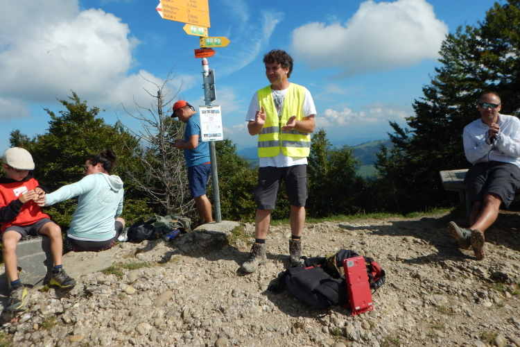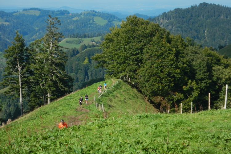 Auf dem höchsten Punkt (1292m) werden alle mit Applaus und vom Fotografen empfangen. Ich fühle mich ziemlich ausgelaugt aber zufrieden und glücklich (später finde ich bei den Bildern des Veranstalters den perfekten Beweis dafür). Zudem erlebe ich eben eine Premiere. Noch nie zuvor habe ich den höchsten Gipfel des Kantons Zürich bestiegen. Ich glaube kaum, dass ich als Einziger den Status des Erstbegehers habe, doch meinen bisherigen Beobachtungen zufolge habe ich ein Alleinstellungsmerkmal. Dieses habe ich nach dem zweiten Verpflegungsposten in Stellung gebracht und ausgefahren.