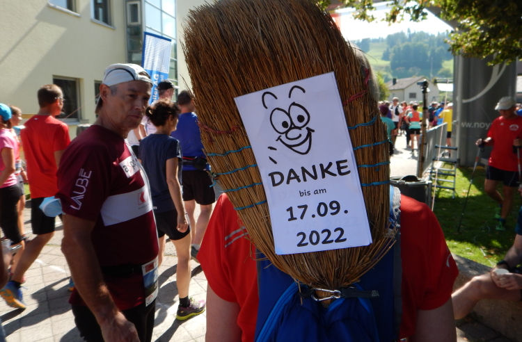 Mit einem leicht mulmigen Gefühl stelle ich mich am Ende des Feldes in die Startaufstellung. Es gibt nicht nur eine Besenläuferin, es gibt noch eine zweite, welche aber nicht einen Besen mit sich führt, sondern einen Teppichklopfer. Diesen Antrieb möchte ich nicht spüren, geschweige denn auf der Strecke zusammengekehrt werden. Doch das großzügige Zeitlimit von vier Stunden lässt mich weder das Eine noch das Andere als reale Gefahr erachten.