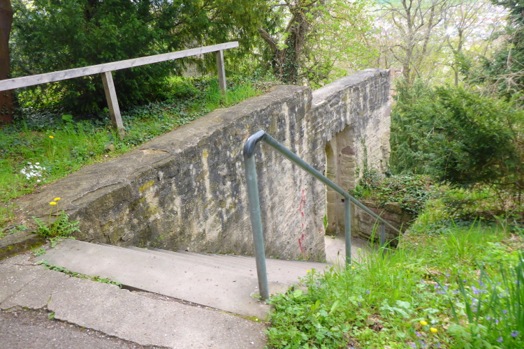 Bevor wir die L1184 erreichen, zeigen Pfeile scharf rechts. Ui, ein herrlicher Singeltrail steil bergab erfordert volle Konzentration. Die Quelle Kalter Brunnen hat hier ein schmales Tal geschaffen. Ein Steg bringt uns auf die andere Seite. Daran anschließend steigen wir matschige Treppen auf der anderen Seite hinauf. Nicht mehr weit vor mir kann ich Norbert erkennen. Den erwische ich noch – denke ich. Aber Pustekuchen, denn es geht endlos steil bergauf. Da hab ich keine Chance. Auch Martin, mit dem ich mich die letzten Kilometer abgewechselt habe, steigt nun munter an mir vorbei und ward nicht mehr gesehen.