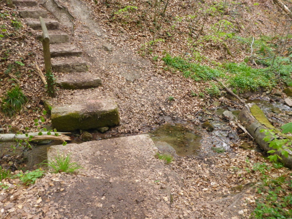Ein Schild weist auf einen riesigen Mammutbaum hin. 1865 ließ König Wilhelm I. von Württemberg ein Pfund (halbes Kilogramm) Samen der urzeitlichen Baumriesen beschaffen und in den Gewächshäusern der Wilhelma in Stuttgart aussäen. 1868/69 wurden diese Pflanzen dann an die Forstmeister der Staatswaldungen verteilt, mit der Anweisung die Bäumchen an möglichst verschiedenartigen Standorten auf verschiedensten Böden zu pflanzen. Hier am Sohlweg gibt es daher heute eine ganze Reihe dieser mächtigen Bäume.