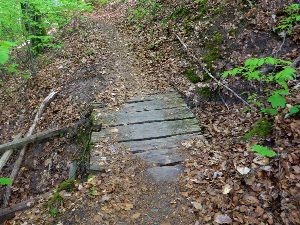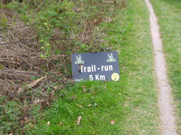 Ein Schild zeigt, dass es jetzt nur noch 5 km sind. Die Helfer sind scheinbar dazu übergegangen, jeden Läufer schon auch der Ferne anzufeuern. Unglaublich, was sie für eine Ausdauer haben. Wieder geht es auf einem spannenden Singletrail auf und ab. Einmal muss man sogar auf Grund fehlender Brücken über einen Bach springen. Gut, es sind nur 30 cm - aber hier und jetzt bedeutet das für mich doch eine mittlere Herausforderung. Es geht nochmals über einen Baumstamm, einen wurzeligen Trail und zu guter Letzt noch einen längeren Matschweg entlang. Jetzt sehen meine Schuhe auch noch nach Traillaufen aus.