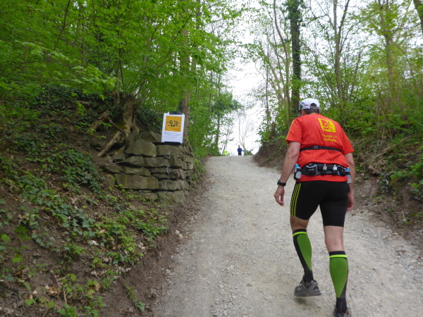 Dann geht es steil bergauf. Müde stapfe ich langsam hinauf. Dass ich dabei ständig überholt werde, macht mich auch nicht lustiger. Über weite Strecken bin ich dann allein. Daher freue ich mich besonders über die Helfer, die an den Abzweigen alles geben, um mich mit ihrem Applaus anzufeuern und dadurch zu motivieren.