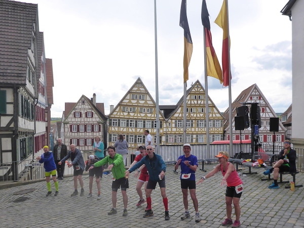 Die Stimmung am Start ist eines großen Traillaufs würdig und die Logistik in Herrenberg sowie das schöne Ambiente am Marktplatz machen die Veranstaltung perfekt. Das Zeitlimit beim Marathon mit sechseinhalb Stunden ist für Einsteiger vermutlich eine Herausforderung, für sie ist der T12 wohl besser geeignet. Die Verpflegung war für mich mehr als ausreichend, wobei ich Salz, Gel und Riegel wie immer, selber dabei habe. Die Helfer waren top motiviert. Vor allem bei meinem langen Tief waren die persönlichen Anfeuerungen eine große Hilfe. Von vorne bis hinten eine runde Sache.