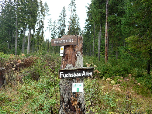 Leicht ansteigend ging es wieder in den Wald, wo jeder Waldweg seinen eigenen Namen hat. So passierten oder liefen wir auf Wegen mit so klangvollen Namen wie „Weibermoosweg“, „Fuchsbau-Allee“ oder auch „Seemanns-Allee“.