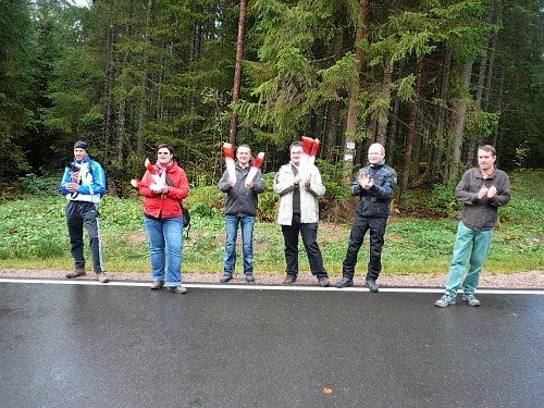 Die Gespräche mit den anderen Läufern lenkten mich sehr gut von den Mühen des Laufes ab. Die zwar mäßigen, aber langgezogenen Steigung machten sich doch langsam in der Muskulatur bemerkbar. Auf einem kleinen Bergabstück auf einer asphaltierten Piste konnte ich Muskeln etwas lockern. Hier hatten sich einige Zuschauer versammelt, die uns anfeuerten.