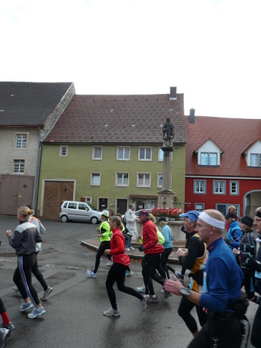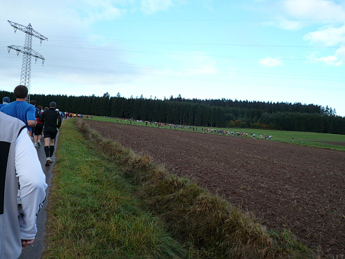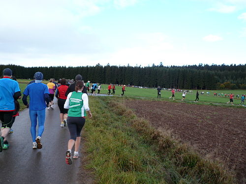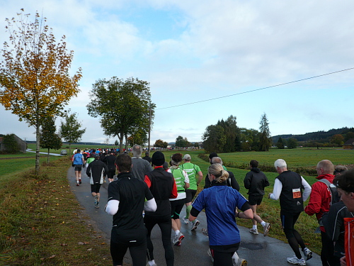 Der Untergrund wechselte von Asphalt zu teils aufgeweichten, aber dennoch gut zu belaufenden Feld- und Waldwegen. Immer wieder wurde ich als laufender Reporter von marathon4you erkannt.