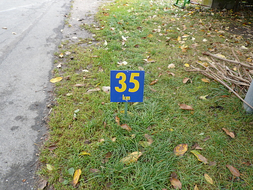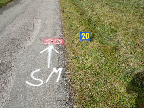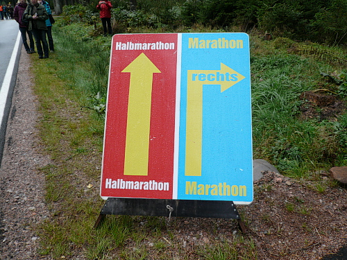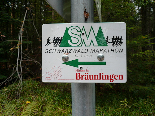 Verlaufen war nahezu unmöglich. Neben der Streckenmarkierung durch Flatterbänder, Kreidepfeile und Helfer war der gesamte Verlauf durch fest angebrachte Schilder mit dem Motiv des Schwarzwaldmarathons gekennzeichnet. Ein Schelm, wer „SM“ nicht nur mit Schwarzwald-Marathon übersetzt.