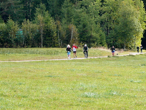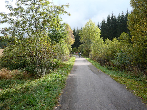 Wir überquerten den Brändbach und kamen nach Unterbränd, wo die Zuschauer inklusive Band traditionell ein kleines Volksfest feierten. Vorbei am Kirnbergsee, einem künstlichen Stausee, liefen wir in Richtung Bräunlingen.