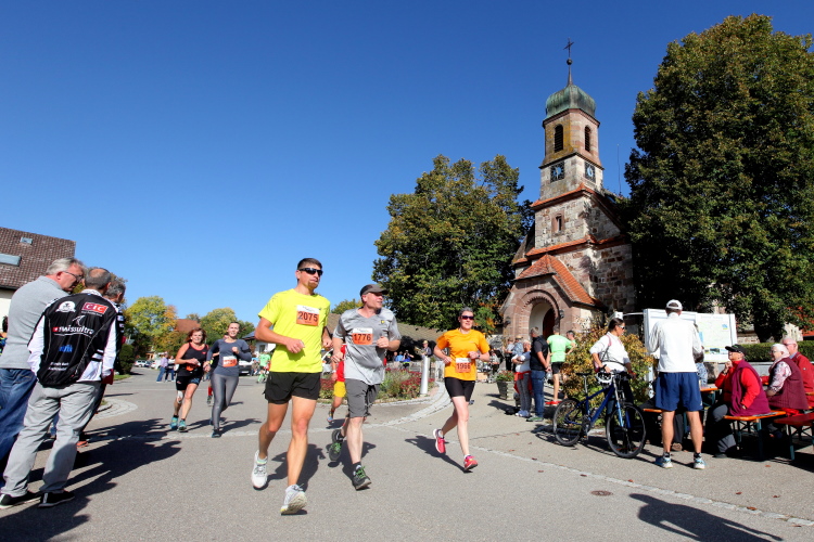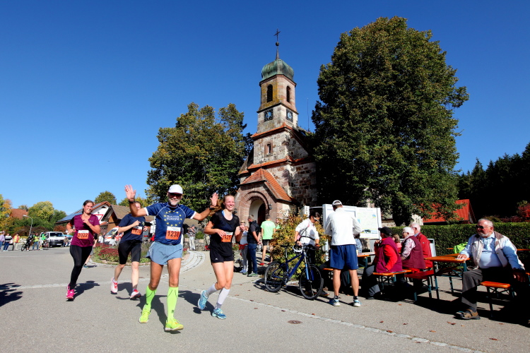 Nach 5 Kilometern erreichen wir am Waldrand unsere erste Versorgungsstelle, viel trinken ist heute angesagt. Angeboten werden Iso, warmer Tee und Wasser. Kurz vor Hubertshofen ist es dann soweit, nach 7 km tauchen wir erstmals ein in den Schwarzwald und werden ihn auch so schnell nicht wieder verlassen.