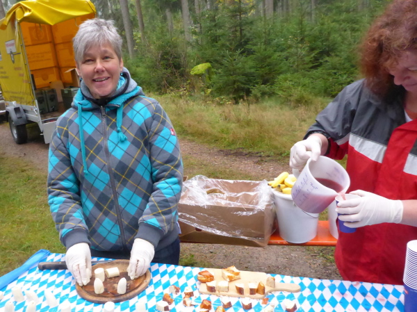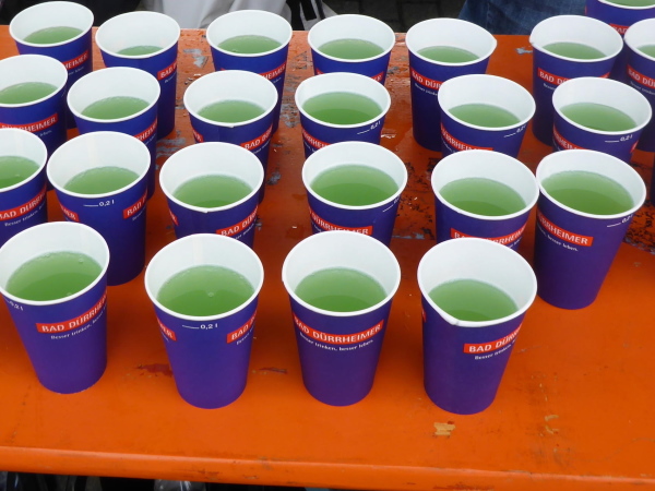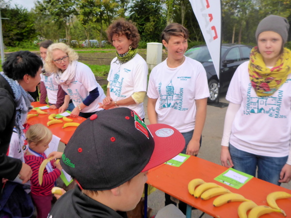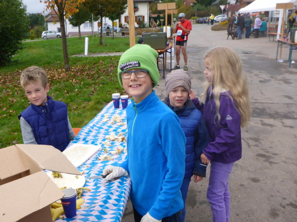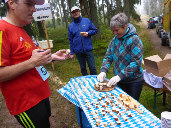 Die Verpflegung auf der Strecke lässt in Quantität und Qualität keine Wünsche offen. Der spätere Start des Halbmarathons kommt mir entgegen, weil es die Startunterlagenausgabe entzerrt und den Stau an den Toiletten in erträglichen Grenzen hält. Die Gegend ist toll, denn ich mag Wald. Beim Heer der Helfer sind mir die vielen Kinder aufgefallen. Hier braucht man sich keine Sorgen um die Zukunft des Laufs zu machen.