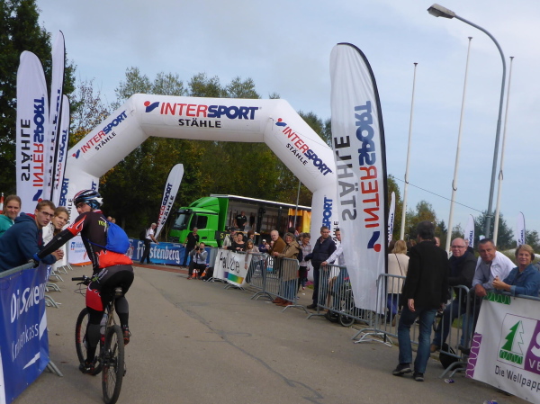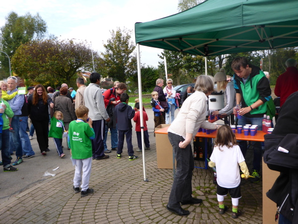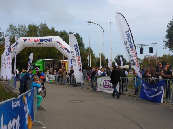 Wir bekommen eine schöne Medaille. An der Verpflegung drängen sich die Bambinis und ihre aufgeregten Eltern. Norbert ist schon von der Dusche und der Massage zurück. Wir nehmen nur noch schnell eine Banane und machen uns auf den Weg zum Auto.