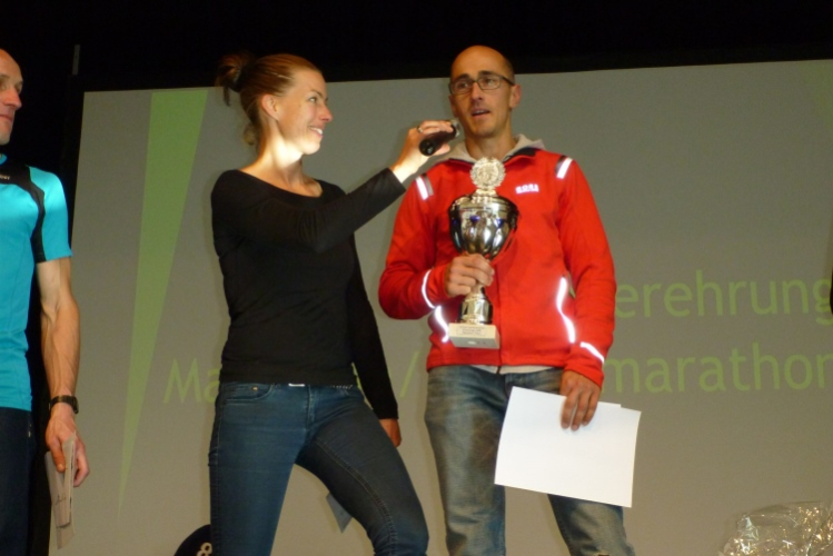 Bei der Siegerehrung muss ich meinen Hut ziehen, denn Miriam Köhler gewinnt nach dem Zehner am Vortag nun auch den Marathon. Dabei wollte sie heute nur gemütlich laufen. Aber dann lag sie an der Spitze und irgendwann glaubte sie, dass es tatsächlich um Sieg reichen könnte. Die Siegermädels sind schon verrückt.