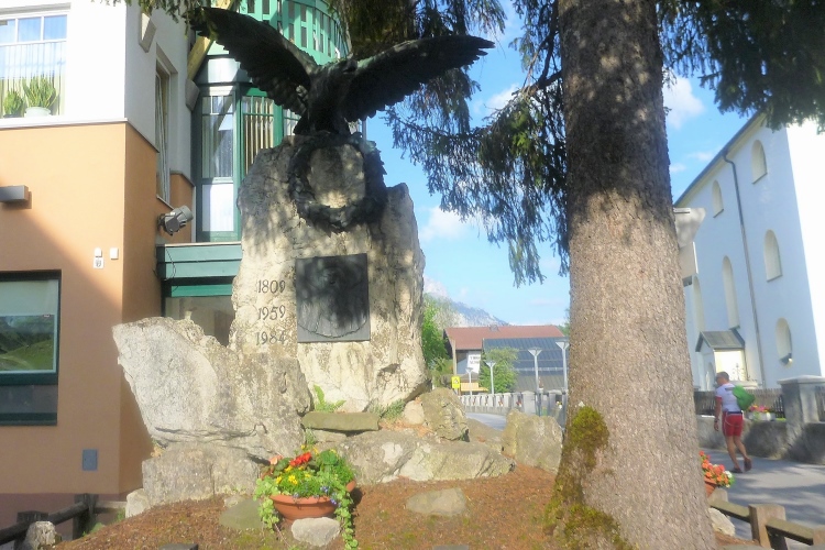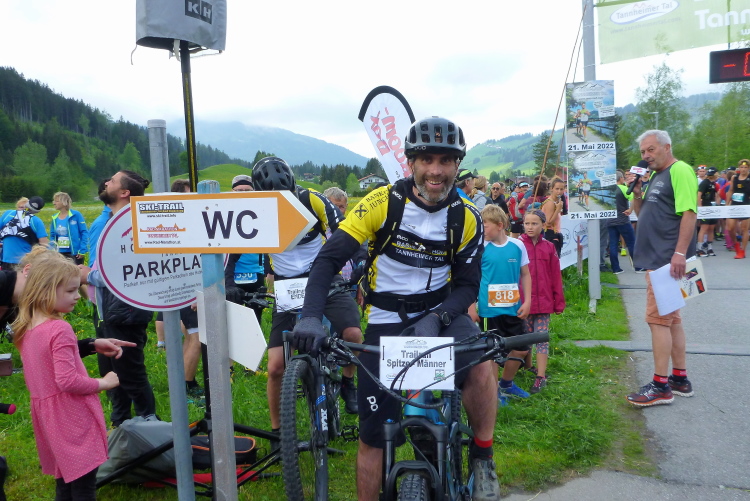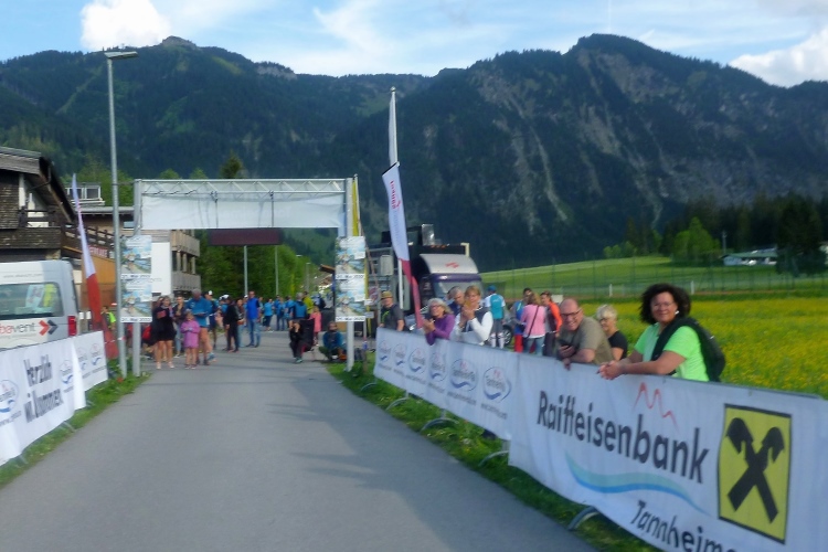 Der Wald öffnet sich, Tannheim liegt mir vor Füßen. Endlich, denn die Zielmoderation war bereits bei km 25 zu vernehmen gewesen. Durch den Ortsteil Berg (Nomen est omen!), unter einer Unterführung durch, bin ich bald darauf wieder fast zuhause. Fast, denn noch ist ein (zu diesem Zeitpunkt gefühlt) völlig überflüssiger km zu absolvieren, und das mit kaputten Oberschenkeln. Die sind echt dermaßen im Ar...gen, daran werde ich bestimmt in den kommenden Tagen viel Freude haben. Egal, vorbei am Andreas Hofer-Denkmal (Tiroler Freiheitsheld) habe ich gleich die Zielgerade vor Augen. Meine stolze 10 km-Finisherin überbringt ihre Glückwünsche direkt „mündlich“, dann jubeln Andrea und Barbara, schließlich ich selber. Uff, das war ein hartes Stück Arbeit nach 4:24 Std. Aber genauso, wie man es sich wünscht.