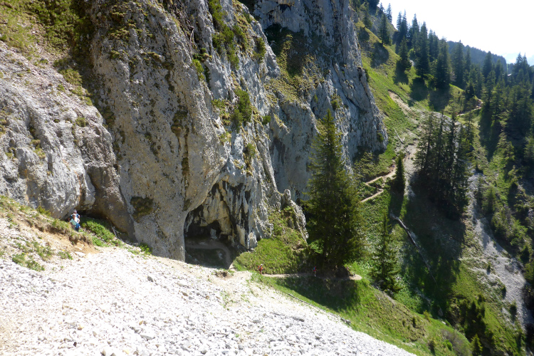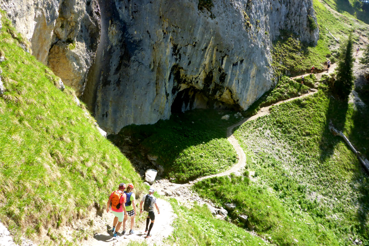 Unser Pfad führt uns ein Stück abwärts, unterhalb von Felswänden und Wasserfällen entlang. Von oben konnte man bereits Aushöhlungen ausmachen, welche wie Höhleneingänge aussehen, sie entpuppen sich aber beim direkten Vorbeilauf als nicht sonderlich tief, aber optisch machen sie dafür umso mehr her. Nach einem kurzen Auf- und Abstieg wiederholt sich eine ähnliche Szenerie noch ein zweites Mal, mit einer weiteren Höhlenaussparung. Hier ist die Natur noch am Arbeiten, wie mir scheint. Sieht jedenfalls sehr geil aus.