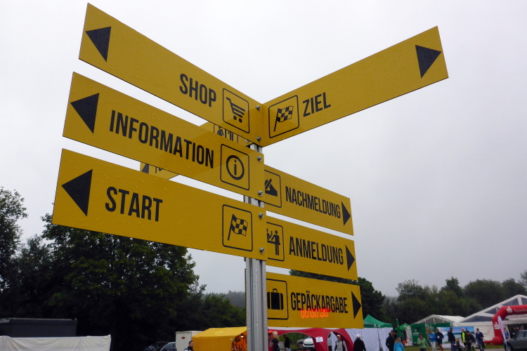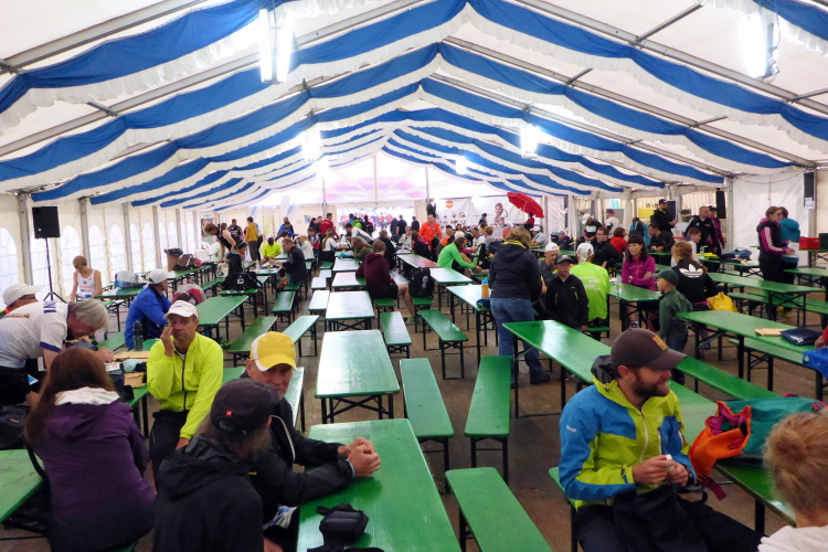Nicht zum ersten Mal in diesem Jahr mache ich mich mit meinen Lauffreunden Charly und Jan auf dem Weg zu einem Marathon. Nach drei Läufen in den vergangenen Wochen, die ich bei sommerlichen Temperaturen von um die 30 Grad bestreiten durfte, war ich über die Wettervorhersage für dieses Wochenende gar nicht traurig. Maximal 15 Grad und gelegentlicher Regen versprachen perfektes Laufwetter. Als wir gegen 7:30 Uhr in Pleinfeld eintrafen, nahm sich der Regen, der uns während der gesamten Anfahrt begleitete, eine Pause. Ein Parkplatz im Ortskern war ohne Probleme zu finden und so machten wir uns zu Fuß auf den Weg zum nahegelegenen Volksfestplatz. In einem großen Festzelt konnten wir unsere Startnummern abholen. Es wurde auch bereits Frühstück angeboten. Für kleines Geld war für jeden Geschmack etwas dabei. Auf dem Volksfestgelände nahmen diverse Anbieter auf einer kleinen Messe gerade ihren Betrieb auf. Das Rote Kreuz hatte ein eigenes Zelt, ein weiteres war über die Gepäckabgabe vorgesehen, zudem gab es noch eines für den Zieleinlauf. Der Zielbogen stand ebenfalls. Auch die Zieluhr lief bereits im Testmodus. Auf der Straße zum Festplatz wurde gerade der Zielbogen aufgeblasen.