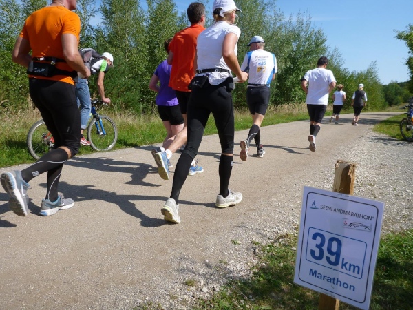 Wir zählen nun die Kilometer rückwärts. Ist zweckmäßig, weil wir uns die Restkilometer auf einer vergleichbar langen Trainingsstrecke besser vorstellen können. Es ist auch besser für den Kopf.