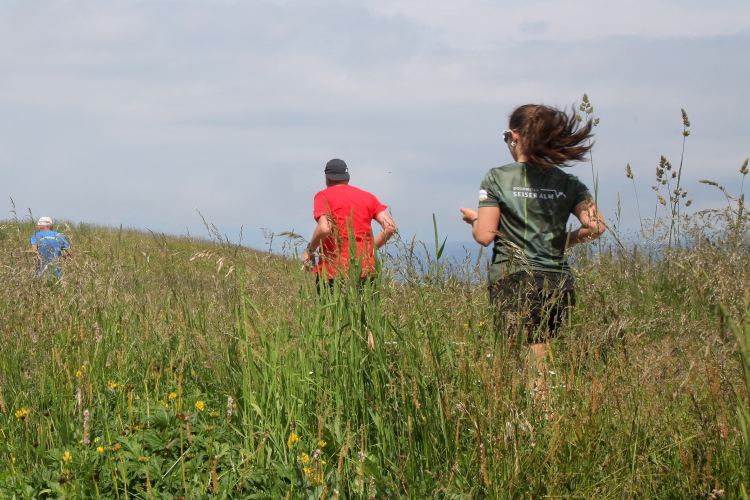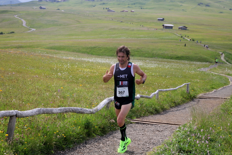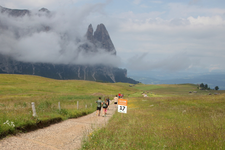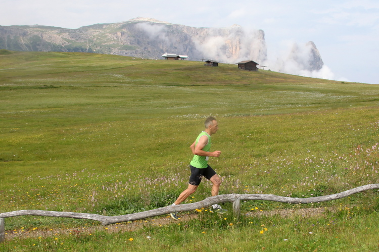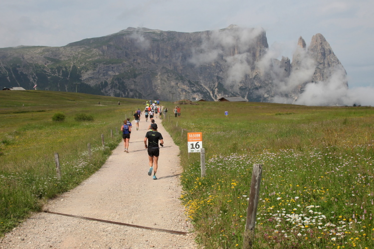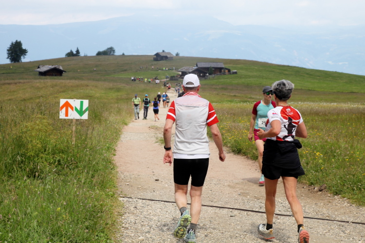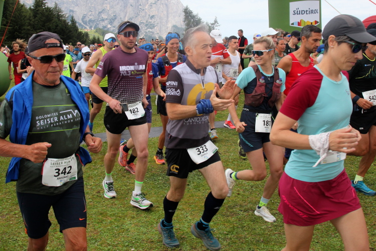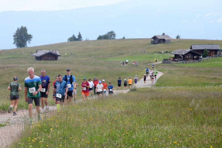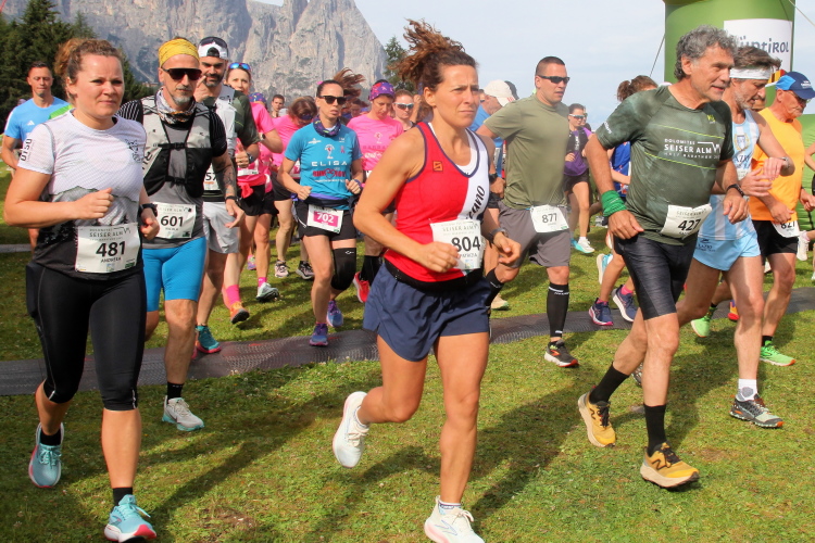 Pünktlich um 9 Uhr fiel in Compatsch der Startschuss zum beliebten Lauf-Event auf Europas größter Hochalm, das trotz Aufstockung von 700 auf 900 Startplätze bereits Mitte April ausverkauft war. Zunächst setzte sich der Grödner Samuel Demetz an die Spitze des Männerfeldes. Doch als bei Kilometer 8,9 zum zweiten Mal beim Ritsch die Zwischenzeit gemessen wurde, lag Daniele Felicetti in Front. Der aus Predazzo stammende Ausdauer-Spezialist, der mittlerweile in Forno wohnt, baute in der Folge seinen Vorsprung aus. Nach 21,1 Kilometern und 600 Höhenmetern ging Felicetti nach 1:18.21 Stunden über die Ziel-Linie, was einer Pace von 3.42 Minuten pro Kilometer entspricht.
