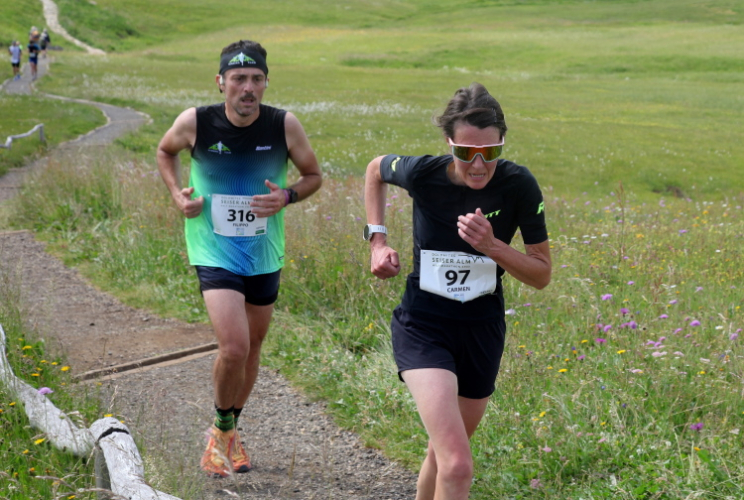 Daniele Felicetti und Alessia Scaini haben am Sonntagvormittag bei perfektem Laufwetter den diesjährigen Seiser Alm Halbmarathon gewonnen. Der 29-jährige Trentiner erzielte in 1:18.21 Stunden die drittschnellste jemals gelaufene Siegerzeit beim renommierten Lauf-Event auf Europas größter Hochalm, während die 26-Jährige in Arco wohnhafte Piemontesin mit einer Zeit von 1:34.12 Stunden nur langsamer als Benedetta Coliva im Jahr 2023 war. Mit 900 angemeldeten Teilnehmerinnen und Teilnehmern konnten die Veranstalter von der LG Schlern und von Seiser Alm Marketing einen neuen Rekord erzielen.