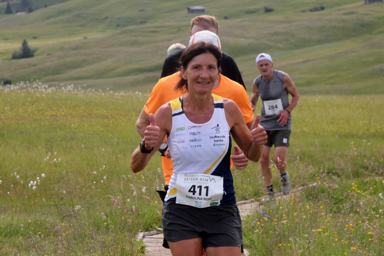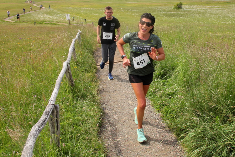 Am meisten wurde Scaini von Claudia Previtali gefordert. In 1:35.34 war die 22-jährige „Azzurra“ etwas mehr als 1.20 Minuten langsamer als die Tagessiegerin. Platz drei im Klassement nahm hingegen die Schweizerin Marie-Julie Huber ein, der eine Gesamtzeit von 1:37.39 Stunden zu Buche stand. Eine starke Leistung zeigte auch die Wahl-Südtirolerin Severine Petersen. Die in Freienfeld wohnhanfte Deutsche bewältigte die 21,1 km mit 600 Höhenmetern in 1:38.25 Stunden und wurde Fünfte. In die Top Ten schaffte es mit Annemarie Schöpf (ASV Rennerclub Vinschgau/8.), Laura Neulichedl (LG Schlern/9.) und Selina Maria Neulichedl (ASV Rennerclub Vinschgau/10.) noch drei weitere heimische Ausdauersportlerinnen.
