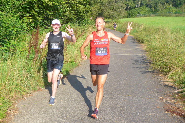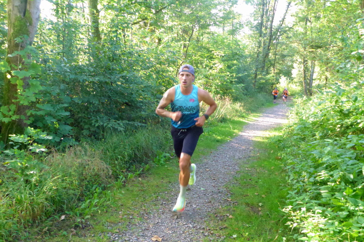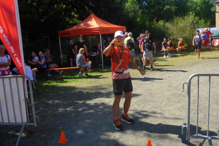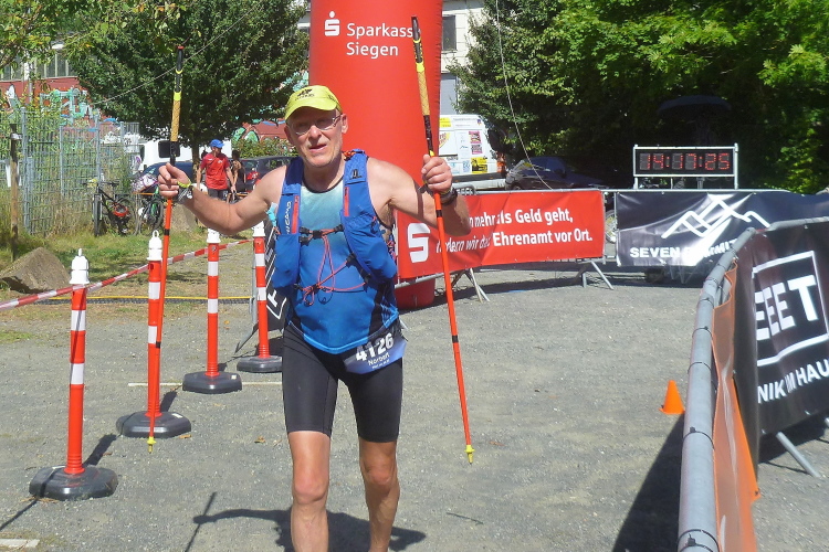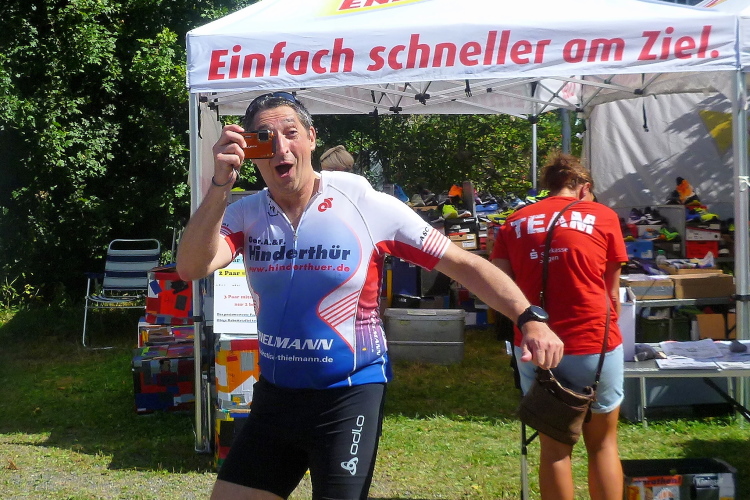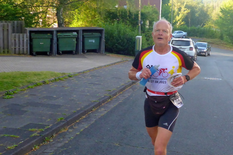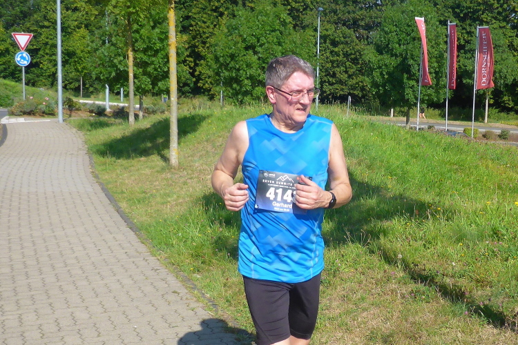Der heute Sechzigjährige hat vor sieben Jahren die dreifache Triathlon-Langdistanz in Lensahn absolviert und dafür nur gute 45 Stunden gebraucht. Oha! Dagegen muten die addierten heutigen 536 HM über 6,95 km im Wettbewerb innerhalb des Wettbewerbs wie ein Kindergeburtstag an. Wobei, wer als Eltern und/oder Großeltern mal Kindergeburtstage ausgerichtet hat, kann mit dem Begriff Herausforderung auch etwas anfangen, ohne gelaufen zu sein.